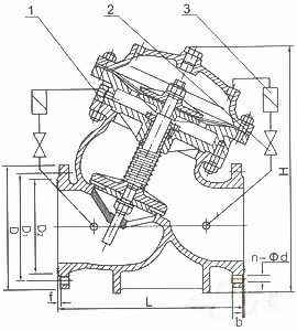 当水泵起动起后,水压作用于主阀阀盘下面和控制室下腔,此压力使主阀开启,控制室上腔的水经过调节阀B缓缓排到出口端,主阀缓缓开启。设定调节阀的开度可合适地主阀开启速度。当水泵停止工作后,进口端水压迅速下降,在自重、弹簧压力作用下快速关闭大部分开度,防止了水倒流余下的开度由控制室上腔的水压和下腔水压联合作用下缓缓关闭,关闭速度减慢形成了缓冲,防止压力剧增。