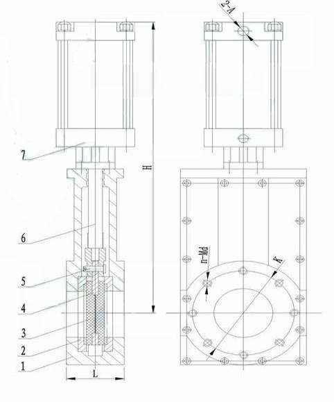当气缸通过阀杆带动闸板下行时,闸板与阀体密封面吻合,将通道切断,即为关闭;反之则为开启。