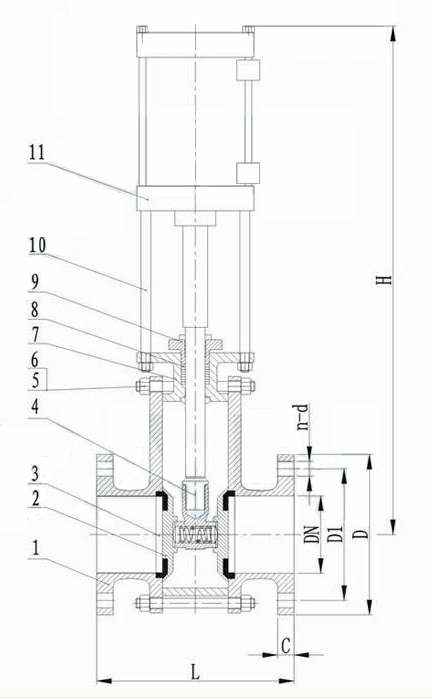 DN | PN(10kg) | L | D | D1 | C | H | n-d |